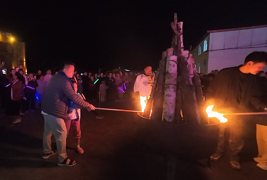 火光升騰,領(lǐng)導(dǎo)豪飲馬奶酒,全員圍火轉(zhuǎn)圈起舞,點(diǎn)燃夏夜熱情!