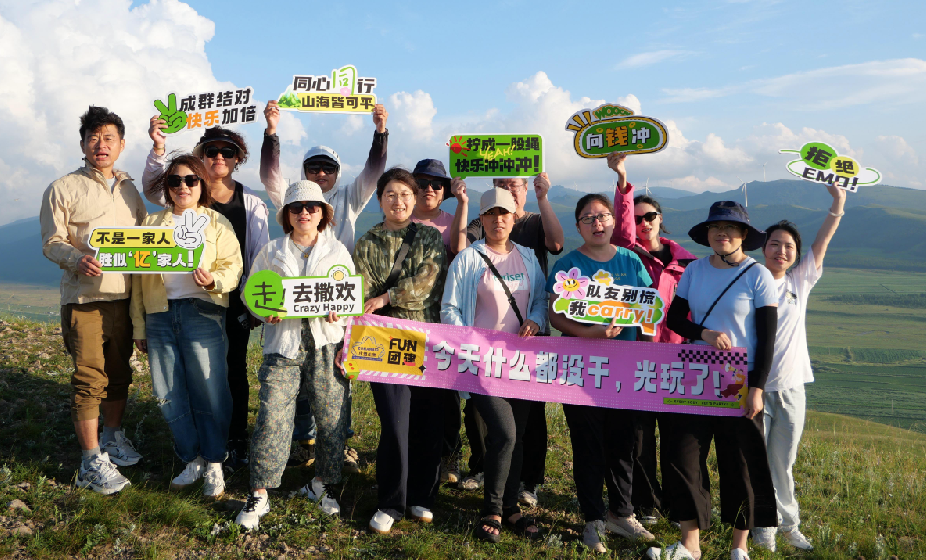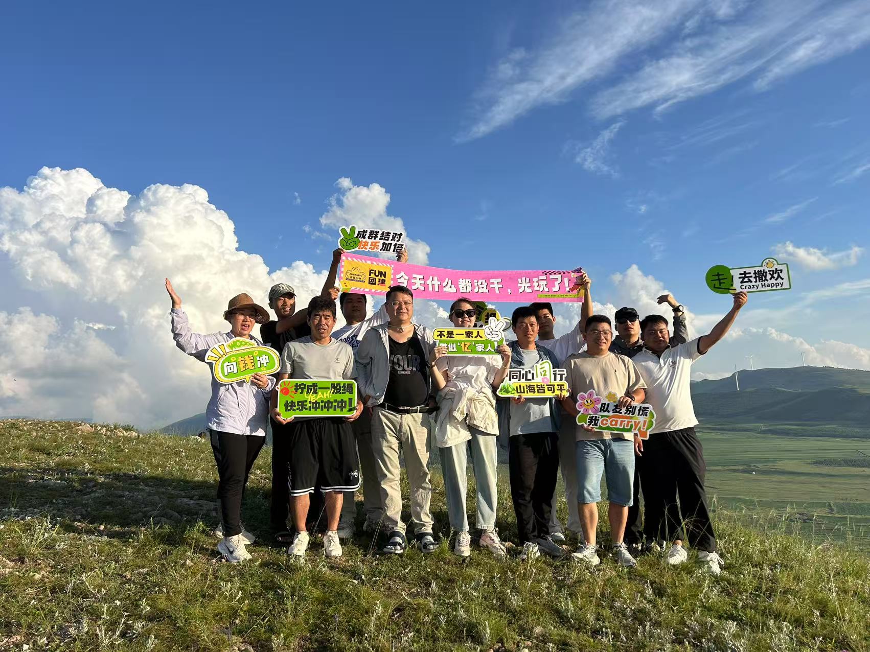 拍下了本次團(tuán)建最有意義的公司集體照——在藍(lán)天下、草原上、笑容里,我們定格這一刻。