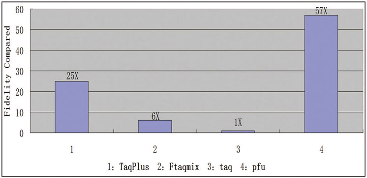 保真性高于普通Taq DNA聚合酶25倍。( LacZ測(cè)定法 )