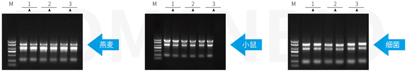 操作可視化:溶液呈粉紅色,便于分離水相和有機(jī)相。 以上參考圖分別取50mg燕麥葉片,20mg小鼠肝臟和1ml細(xì)菌DH5α菌液各數(shù)份,組織進(jìn)行液氮研磨處理,菌液離心收集細(xì)胞后,分別加入1ml Zomanbio RNApure 和 T、I公司相應(yīng)產(chǎn)品,按各自說明書進(jìn)行RNA提取。洗脫體積分別為80μl、100μl、60μl。RNA電泳上樣量分別為5μl,1%瓊脂糖凝膠電泳。