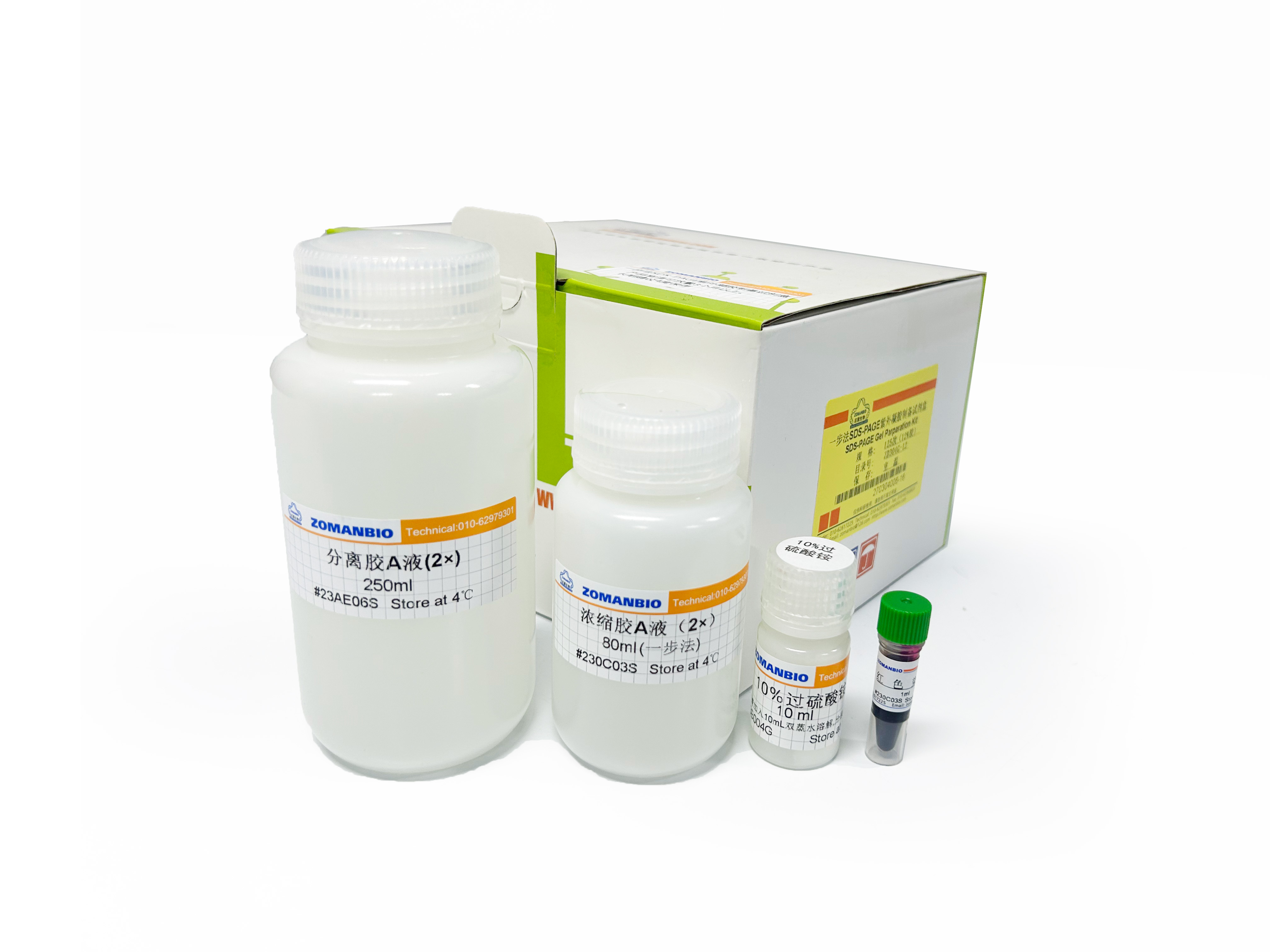 本產品為可紫外照射凝膠快速顯示蛋白條帶的一步法PAGE凝膠的預混配方。產品只需要1:1添加后,再加入催化劑---過硫酸銨,且支持一步灌膠,無需等待分離膠凝固再灌濃縮膠,此濃縮膠可以添加染料,使上樣孔更清晰,方便點樣。制備的凝膠與傳統(tǒng)Tris-甘氨酸電泳液完美兼容,且電泳方法一致。