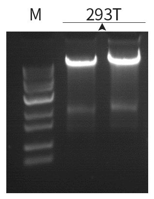 | 使用ZP332提取1×106培養(yǎng)細(xì)胞的DNA,洗脫體積:50uL。 1%瓊脂糖凝膠電泳,5v/cm 電泳15 min,上樣量:3uL。