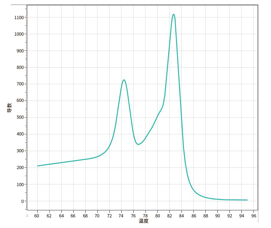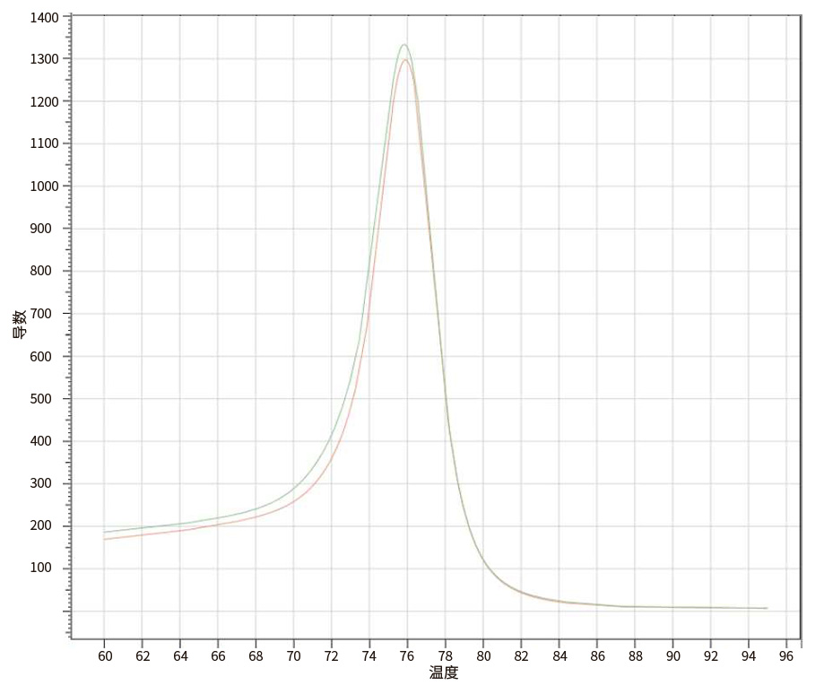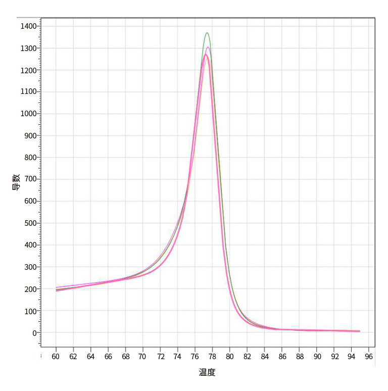 以水稻miRNA為模板,使用本產(chǎn)品與某T公司和某V公司同類產(chǎn)品進(jìn)行反轉(zhuǎn)錄,得到的cDNA進(jìn)行熒光定量檢測(cè)osa-miR156a??梢钥吹?,使用本產(chǎn)品得到的融解曲線為單峰,同類產(chǎn)品得到的融解曲線為雙峰。