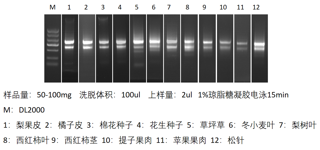 3、樣品覆蓋廣泛,可以提取包括常規(guī)的大田作物如水稻/玉米/小麥;復(fù)雜淀粉種子如水稻/小麥/玉米/棉花種子、含水量高作物如西瓜/甜瓜、復(fù)雜果實(shí)如葡萄/芒果/楊梅果實(shí)、復(fù)雜植物葉片如松針/葡萄/楊樹(shù)/梨樹(shù)/香薷、復(fù)雜花卉如月季/玫瑰、復(fù)雜多糖植物如芭蕉/景天/石斛等數(shù)百種復(fù)雜樣本。