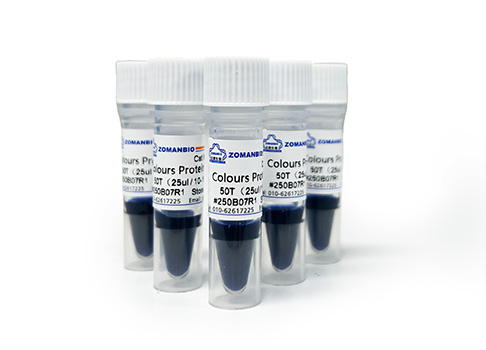 本產(chǎn)品由10-180 kDa的10種純化的天然蛋白混合而成,其中70 kDa為橙紅色蛋白條帶,10 kDa為綠色蛋白條,方便判斷各個條帶的準(zhǔn)確位置。產(chǎn)品適合作為SDS-PAGE電泳時變性蛋白樣品的分子量參照,并可實時觀察蛋白樣品的電泳分離狀況,也可用于檢測Western blot的轉(zhuǎn)膜效率。由于共價結(jié)合的染料會影響蛋白質(zhì)分子的電泳遷移率,本產(chǎn)品僅適于粗略地估計目的蛋白樣品的分子量。