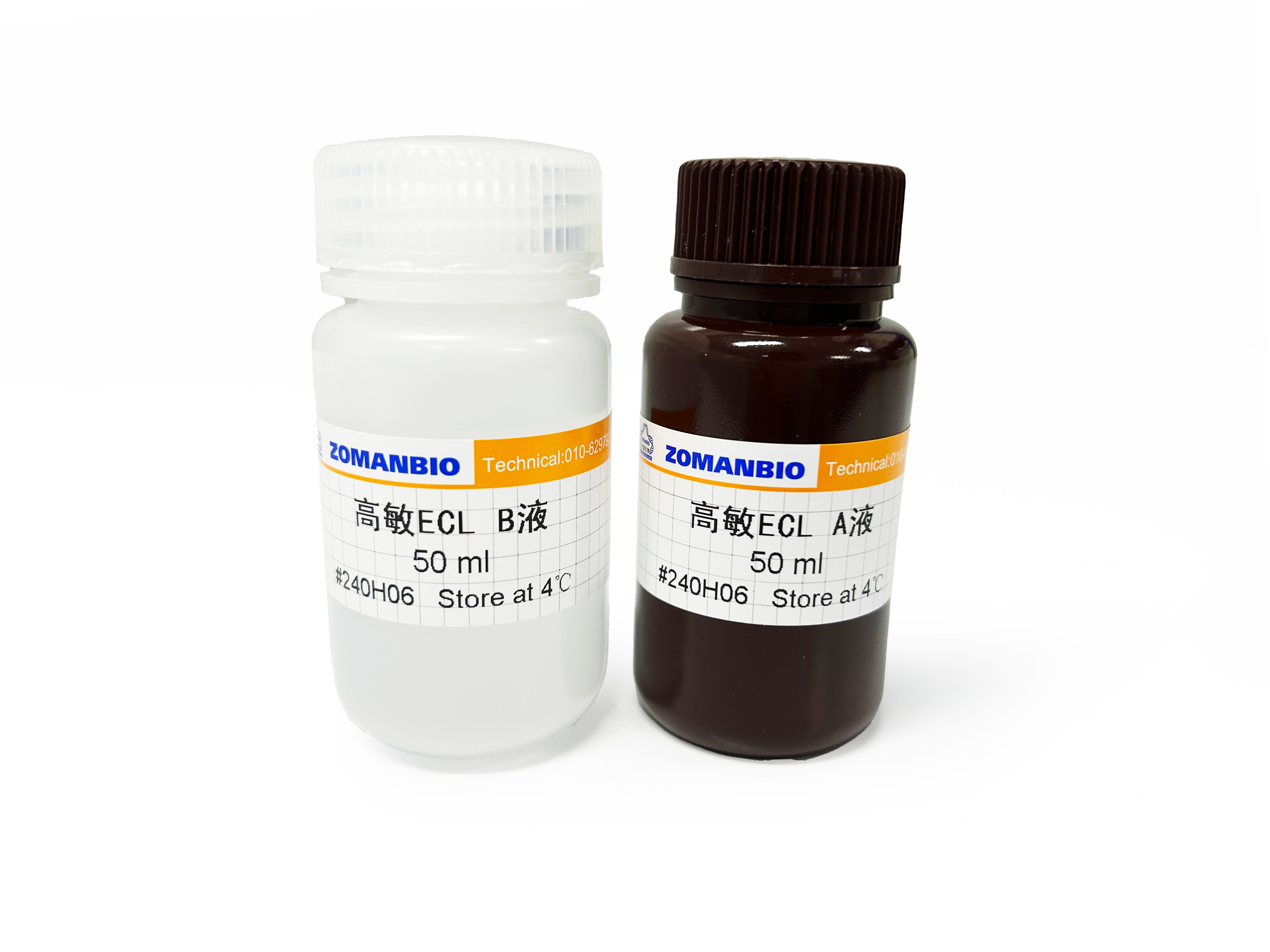 ECL(enhanced chemiluminescence)發(fā)光液是基于魯米諾(Luminol)的新一代增強型化學發(fā)光底物試劑,即辣根過氧化物酶(HRP)化學發(fā)光底物液,是目前WB檢測中最常用高靈敏的顯色試劑。