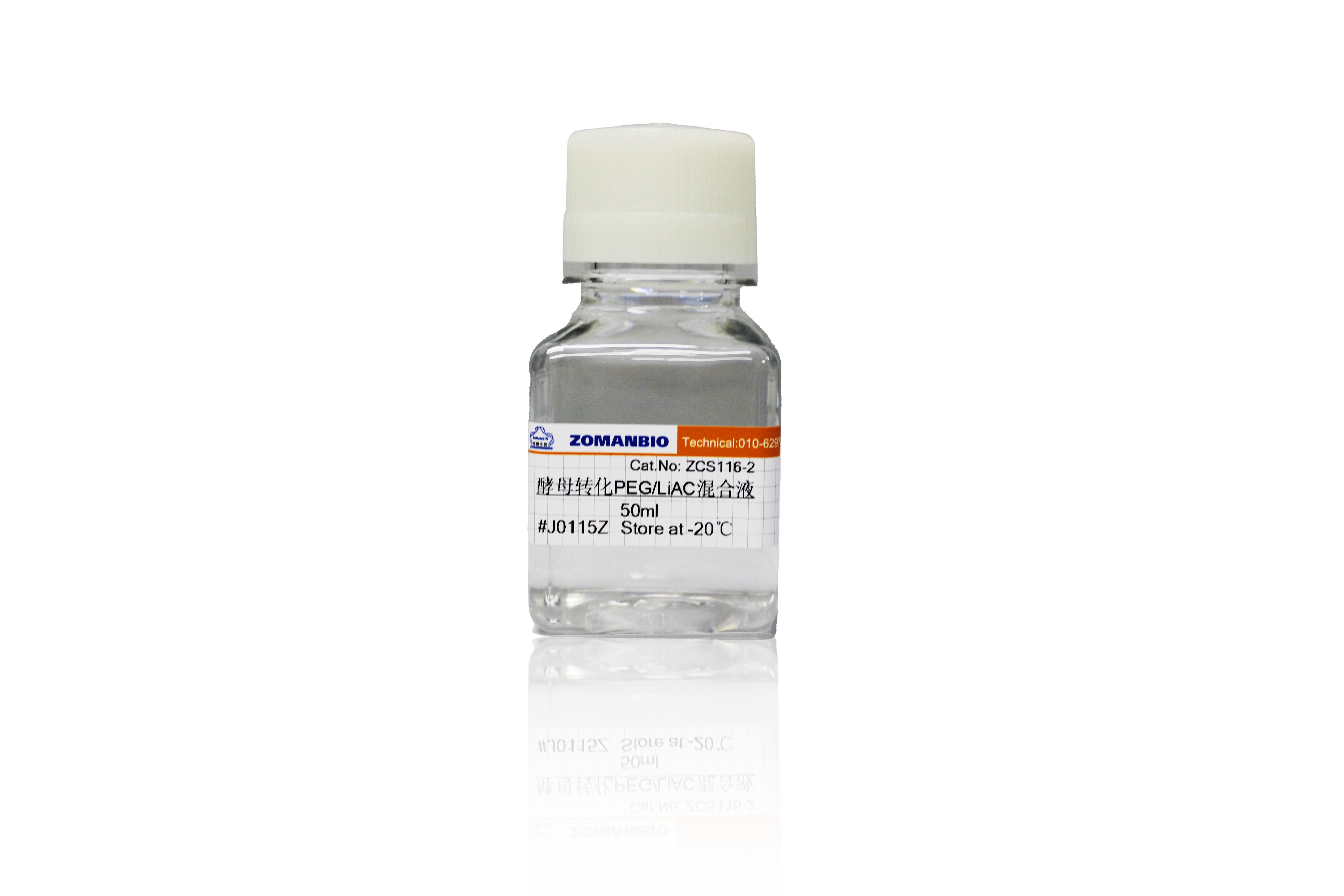 本產(chǎn)品主要用于釀酒酵母感受態(tài)細胞的轉(zhuǎn)化實驗。PEG/LiAC 有利于酵母細胞吸收質(zhì)粒DNA,從而提高酵母的轉(zhuǎn)化效率。