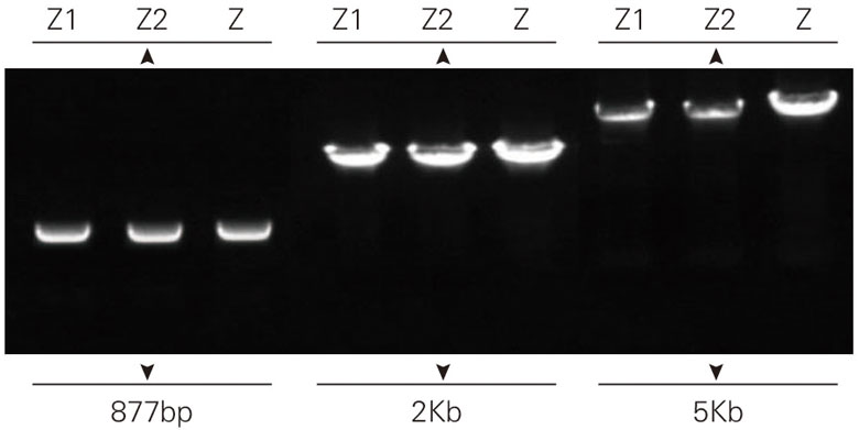 片段大?。↘B) | 普通 2xTaq Marster mix(含染料) | ZOMANBIO 2xFtaq PCR MasterMix(含染料) | 節(jié)省時間 (h:min:s) |