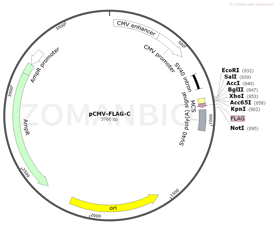pCMV-FLAG-C是一個(gè)哺乳細(xì)胞過表達(dá)質(zhì)粒,C端有FLAG標(biāo)簽。