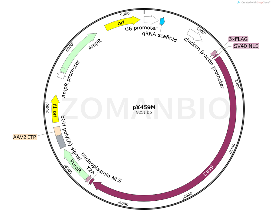pX459M是一個(gè)哺乳細(xì)胞基因編輯質(zhì)粒。