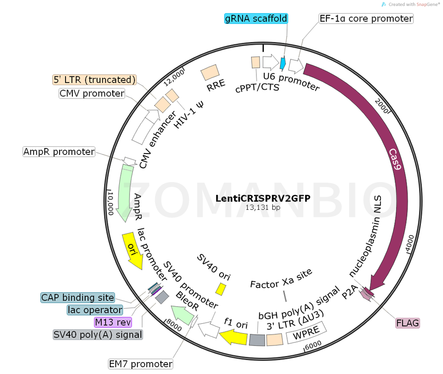 質(zhì)粒序列請(qǐng)下載:ZK613LentiCRISPRV2GFP哺乳編輯質(zhì)粒.txt
