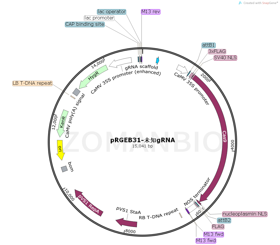 pRGEB31-未知gRNA。植物基因編輯質(zhì)粒。